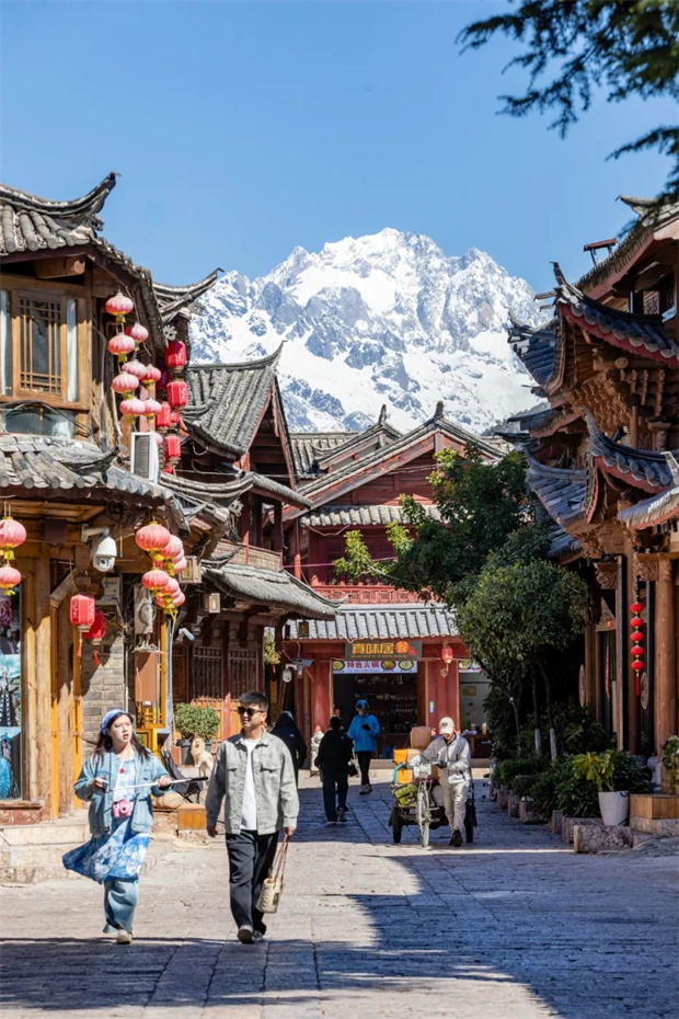 玉龍雪山的輪廓在屋檐間若隱若現,將千年的冰雪化作一縷縷輕煙,裊裊飄進小巷深處的民宿,與茶香交織成獨特的韻