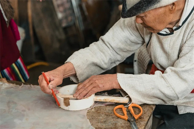皮保持著精準(zhǔn)的角度。“這力道,就像跳勒巴舞時的踏腳,得拿捏到位。”話語間,滿是對千年技藝的敬畏。|