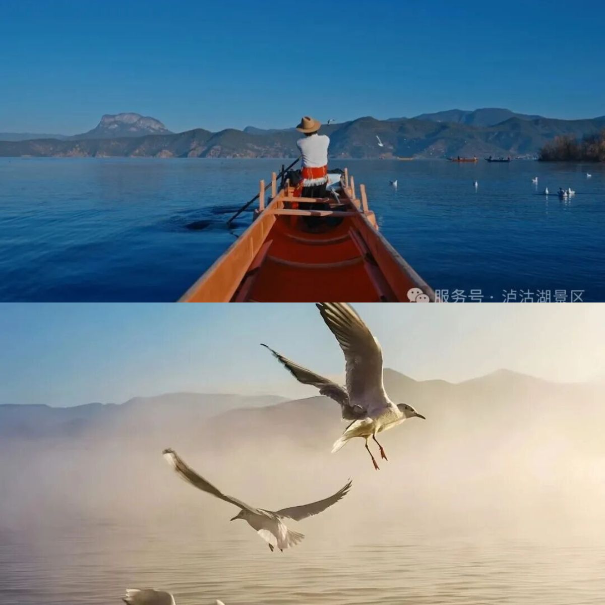 每年11月至次年3月,成千上萬的紅嘴鷗從西伯利亞遠道而來,在瀘沽湖過冬。它們時而掠過湖面,時而在空中盤旋,成為冬日里最靈動的風景。登上一葉豬槽船,當船行至湖心,海鷗便會追隨著你。帶一包小餅干,伸出手,它們便會輕盈地飛來,從你手中啄食。這一刻,人與自然和諧共處,所有的煩惱都隨風而散。