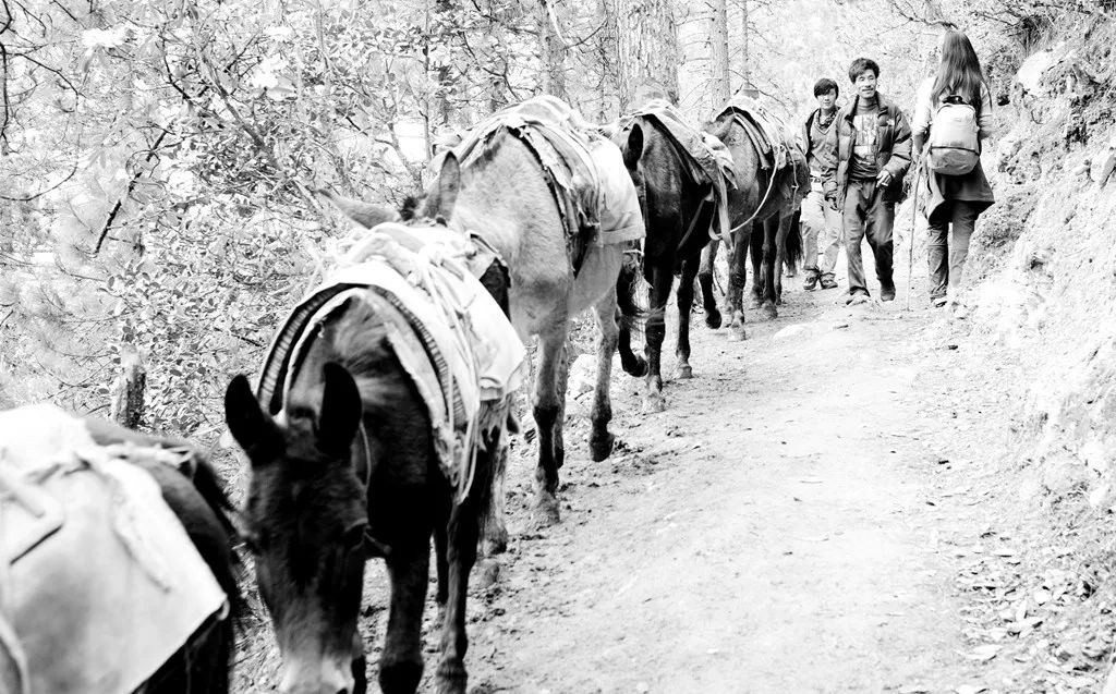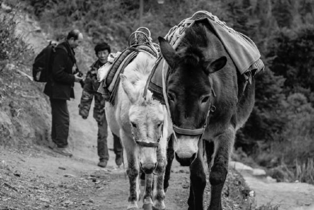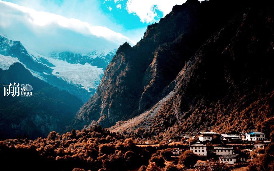 徒步六小時,當我們站梅里雪山腳下的時候,彷佛雪山的神秘在此刻得到了全部的解答。雨崩人維持了幾百年來的農耕畜牧的傳統生活方式。木質結構的平房,用山石搭建庭院的圍欄,悠然行走于土石路上的牛羊與騾馬,無不顯示著這個村落的與世隔絕和寧靜安詳。