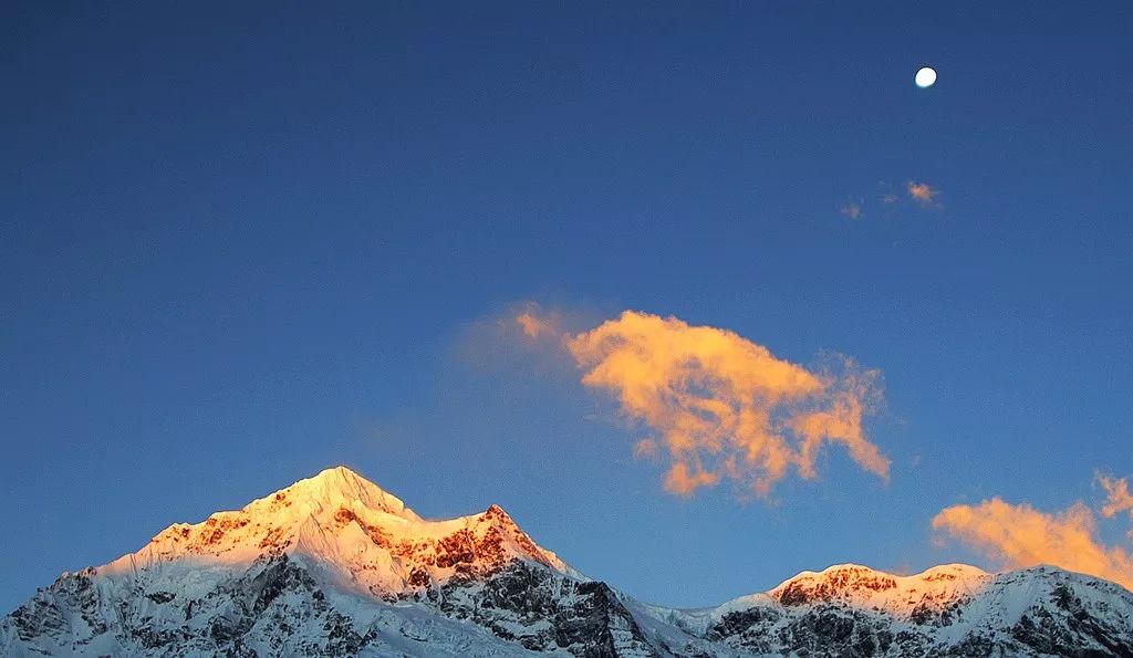 梅里雪山在藏民心中是一座圣山,藏語中稱為“絨贊卡瓦格博”。主峰說拉曾歸面峰,其左(北)邊的山峰有布窮松吉吾學、再北為扎堆吾學,被稱為無敵降魔戰神;其右(南)依次為帕巴乃丁吉著、巴烏八蒙、吉娃仁安(五佛冠峰),再往南就是身姿優美的女神峰緬茨姆,緬茨姆是卡瓦格博峰之妃,大海女神,藥王的侄女,又有傳說為麗江玉龍雪山之女。藏區稱卡瓦格博峰為“絨贊卡瓦格博”,絨:指河谷地帶;贊:屬于很厲害的神;卡瓦格博:白色的大雪山;整個意思為:圣神的白雪山峰。