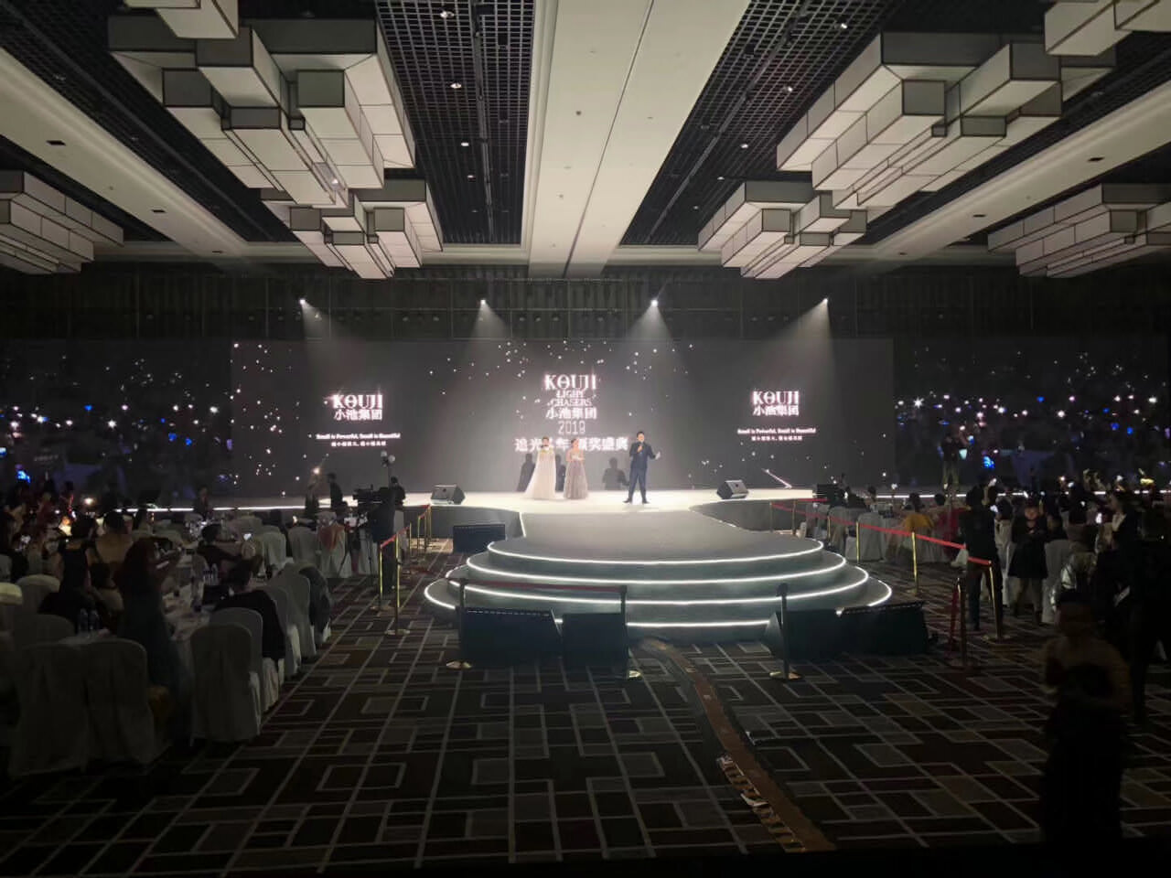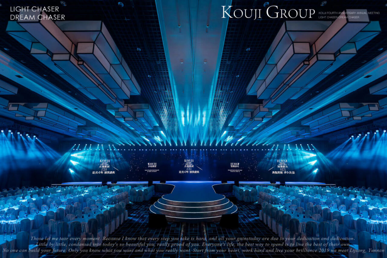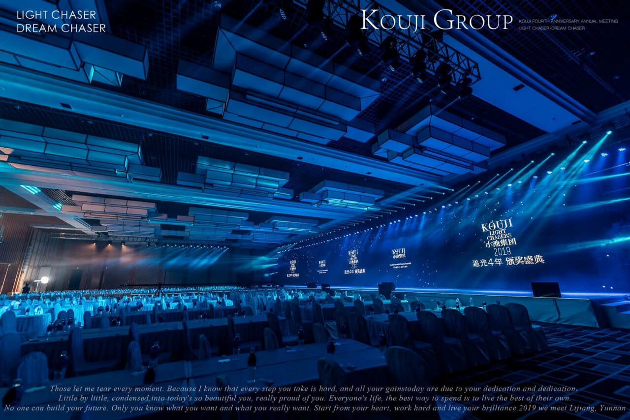小池集團2019年追光4年 頒獎盛典在麗江召開;天行提供會議會展、獎勵旅游、市場活動管理及包括AV搭建、物料制作、活動場地、演藝、拓展、勞務人員等專項資源管理在內的專業會展服務。