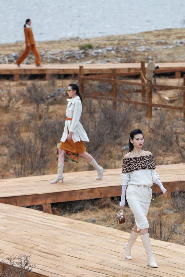 在延續XG時尚優雅的品牌風格之上增添了荒野游牧風的墨彩,模特置身于無垠的原野和牧場之中游走自如,將時下潮流和自然藝術糅合、碰撞,近300米原生態實木T臺,100多頭牛羊群,近6000米平方的秀場空間。最終匠心鑄造了一個天然的舞臺和恢弘秀場,以多平臺多渠道的呈現方式令場內外觀眾都達到了最佳視覺體驗。