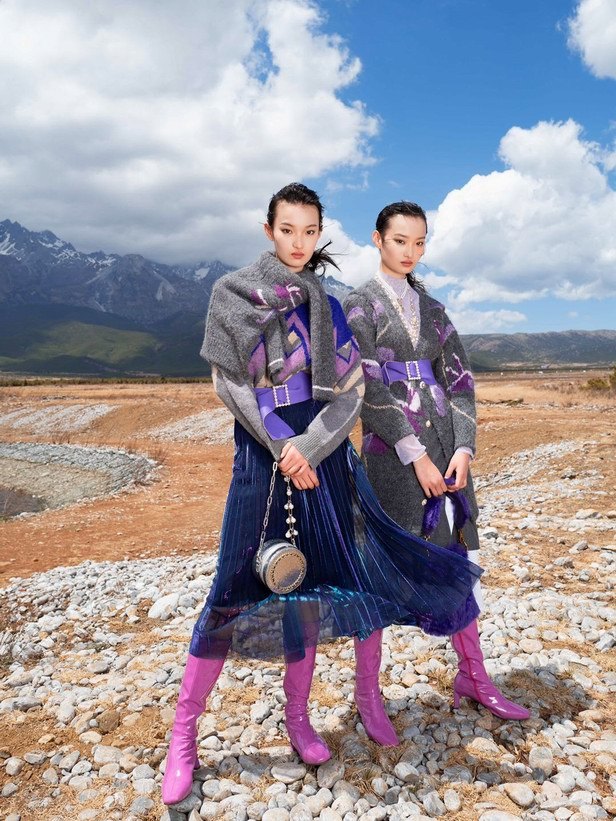 玉龍雪山連綿不絕,氣勢壯麗磅礴,是納西族及麗江各民族心目中的圣山,更是麗江最具標志性的景觀。XG此次發布會結合了高原廣袤超前的自然視野,將時裝與自然、傳統與現代、摩登與民俗融入在雪山之下,舉辦了一場空前震撼的新品發布會。