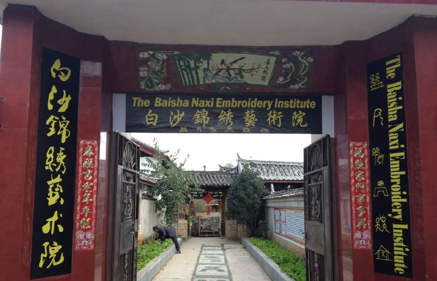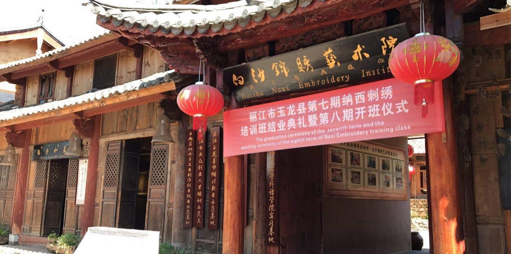 Baisha Naxi Embroidery Institute is located in the World Cultural Heritage site- The ancient town of Baisha, which is the ancient capital of Naxi(Baisha is at the foot of Jade Dragon Snow Mountain). It is the largest and best ethnic embroidery institute in China. It occupies an area as 3200 square meters, and has four typical Naxi ancient courtyards. This Institute was opened in 2003 with the support of the government.Zhang Chunhe, the best and most famous Naxi painter, who is also the creator of the modern Dongba painting was invited to be the general art consultor.Xu Yunkui,one of the most famous strong coulour wood-block prainter,a memember of the National Art and Literature Association was invited to be the principle.And Mo Meiyan,one of the best skilled ethnic emboroidery masters was invited to be the embroidery preceptor.