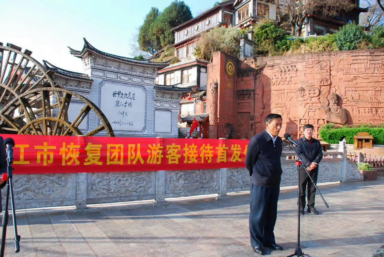 疫后麗江市恢復團隊游客接待首發儀式在麗江古城大水車舉行-麗江旅游再出發