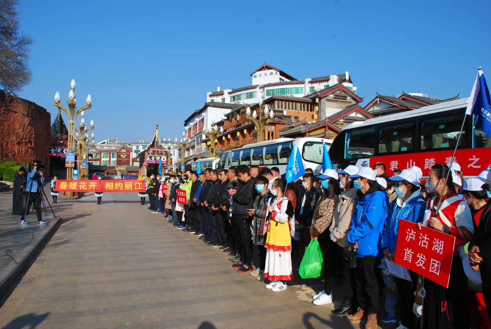 春光明媚,暖風融融,當下正值麗江旅游好時節。3月22日上午9點,在云南旅行社恢復“省內游”后,麗江迎來首批旅行團。麗江市委常委、常務副市長木崇根,麗江市文化和旅游局局長張建華,麗江古城管理局常務副局長和麗軍,玉龍雪山管委會主任楊俊星,瀘沽湖管理局局長和振,老君山管理局局長和平生,玉龍旅游股份有限公司總經理劉曉華,麗江市旅游協會會長王化新等領導到場迎接。