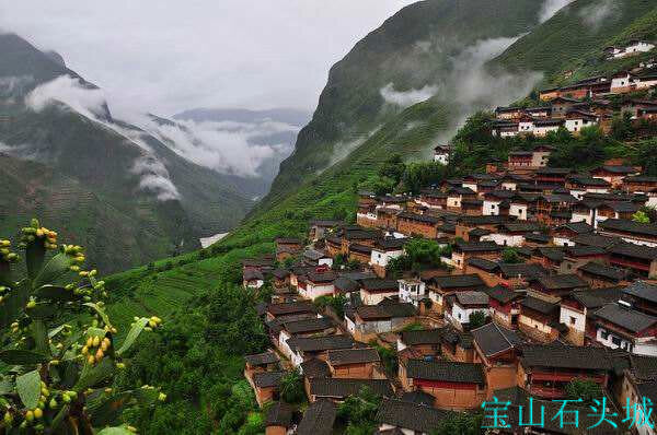麗江寶山石頭城一帶,是古代麗江納西族由“依山負險,酋寨星列,不相統攝”的游牧階段轉向農耕階段的歷史寫照,選擇巨石建立城堡。除了軍事攻防方面的原因之外,也含有珍惜可耕土地的重要因素。寶山石頭城納西語稱為“拉伯魯盤塢”,意為“寶山白石寨”,城內瓦屋鱗鱗,巷道縱橫,納西族居民辟巖建屋,房屋柱石和房沿石均隨勢打成,古樸自然、奇絕無窮。