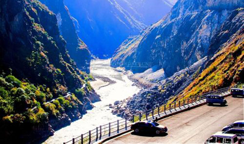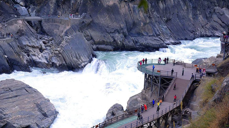 虎跳峽是世界上落差最大的峽谷。峽長17公里,谷地海拔1800米,江面落差200多米。有18個險灘,兩岸雪山峭壁筆立于江面之上3000多米。 整個阿倉虎跳峽分為上虎跳、中虎跳、下虎跳三段,迂回道路25公里。各段江面奇窄,北岸只容一個單行的山道旁,飛瀑直瀉,巨石橫生。