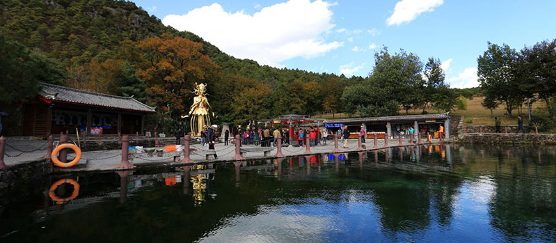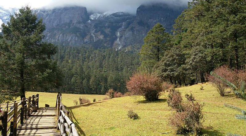又名“殉情第三國”,海拔3240米,是納西族人心中的圣潔之地。傳說,從這里可通往“玉龍第三國”。據東巴經記載,“玉龍第三國”里“有穿不完的綾羅綢緞,吃不完的鮮果珍品,喝不完的美酒甜奶,用不完的金沙銀團,火紅斑虎當乘騎,銀角花鹿來耕耘,寬耳狐貍做獵犬,花尾錦雞來報曉。”