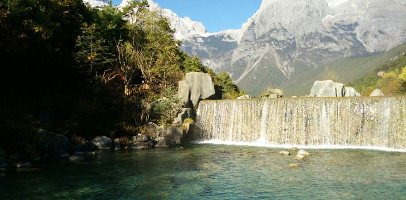 從甘海子到云杉坪之間,有一條幽深的山谷,谷內林木森森,清溪長流,谷底清泉長流的河,就是白水河。因河床、臺地都由白色大理石、石炭石碎塊組成,呈一片灰白色,清泉從石上流過,亦呈白色,因色得名“白水河”。白水河之水來源于四五千米高處的冰川雪原融水,清冽冰涼,據說白水河的水來自玉龍之口,帶有靈性。