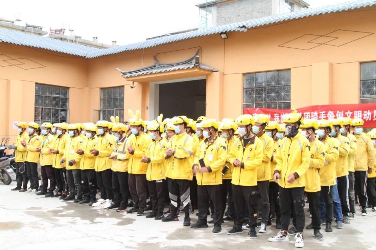 9月1日,麗江美團(tuán)總部的大院內(nèi),外賣小哥們神情專注,傾聽著麗江市委宣傳部副部長和文武在“我奉獻(xiàn)、我快樂、美團(tuán)騎手爭創(chuàng)文明動員大會”上的講話。本次動員大會由麗江市文明辦、麗江美團(tuán)外賣聯(lián)合開啟,旨在倡導(dǎo)外賣小哥在工作中做到文明出行。