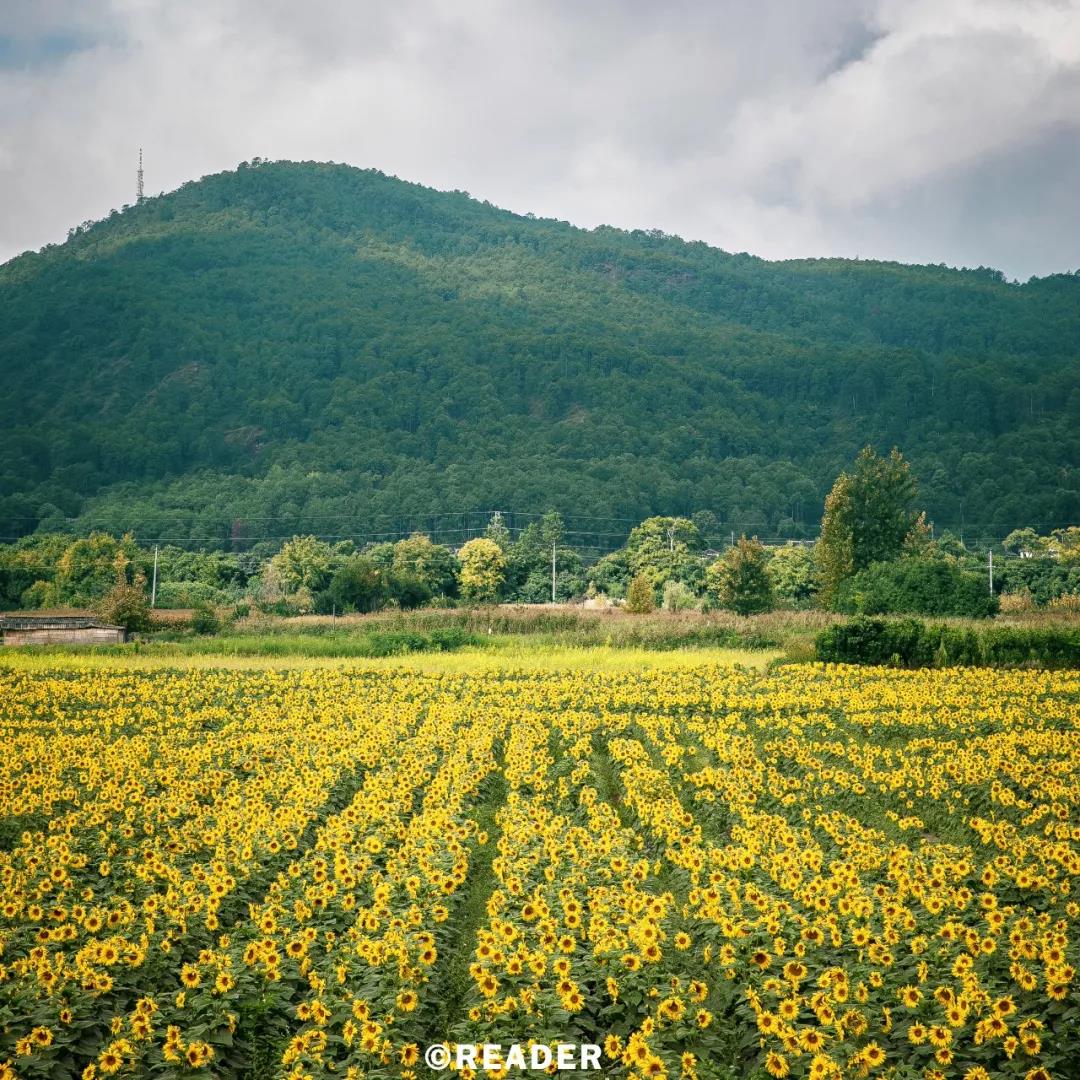 如果自駕來麗江,從大麗高速下來,沿著青龍北路一直南行,不一會,大片的向日葵就會像子彈一樣擊中你的心房,哪怕你早有準備。