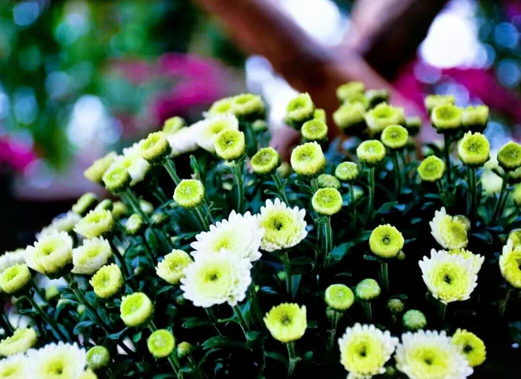 “旗幟”、“花墻”、“花柱”、“花瀑”、“花廊”、“花瓶”等70余種獨具匠心的菊花造型異彩紛呈,讓人賞心悅目、流連忘返。