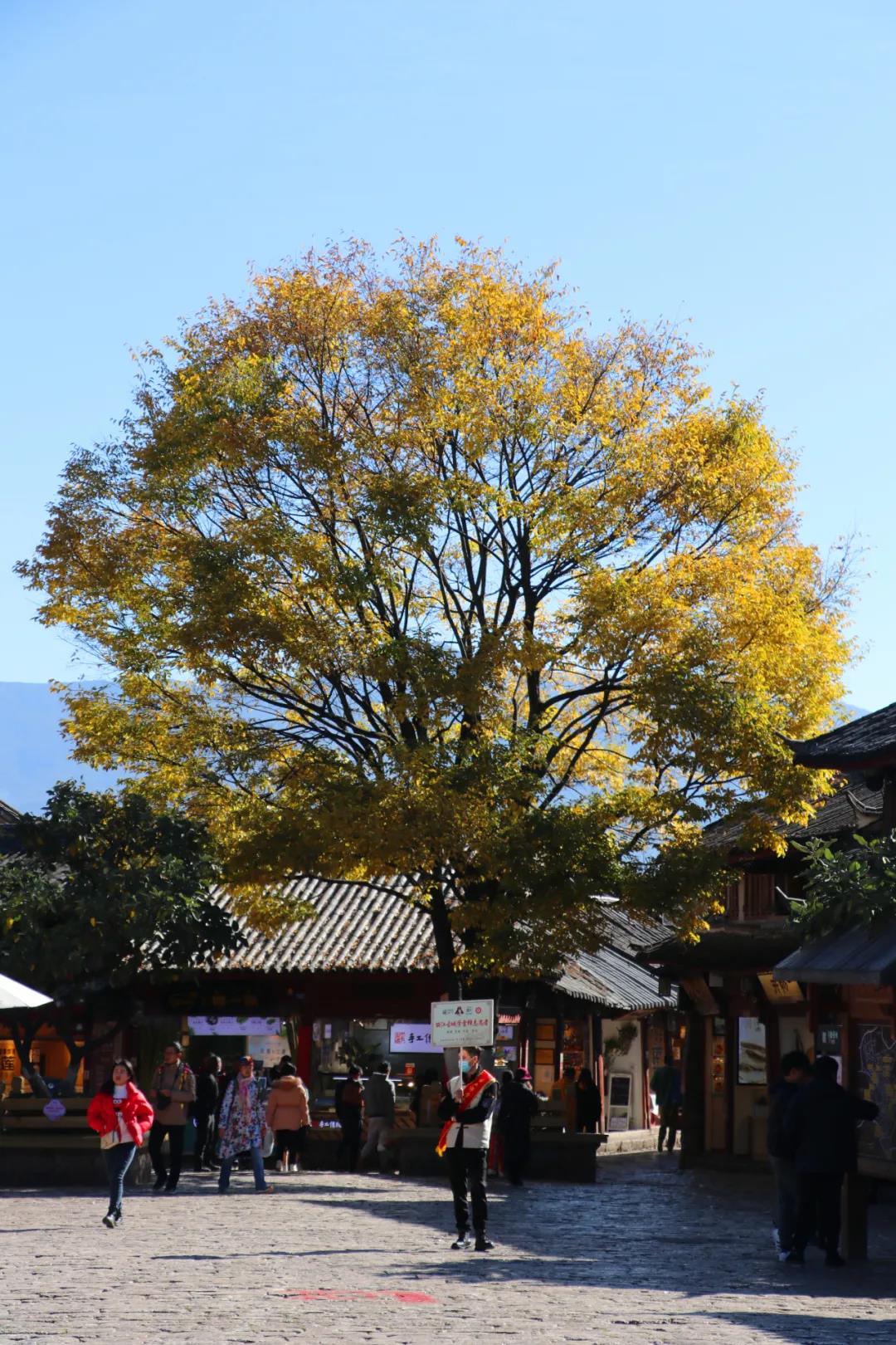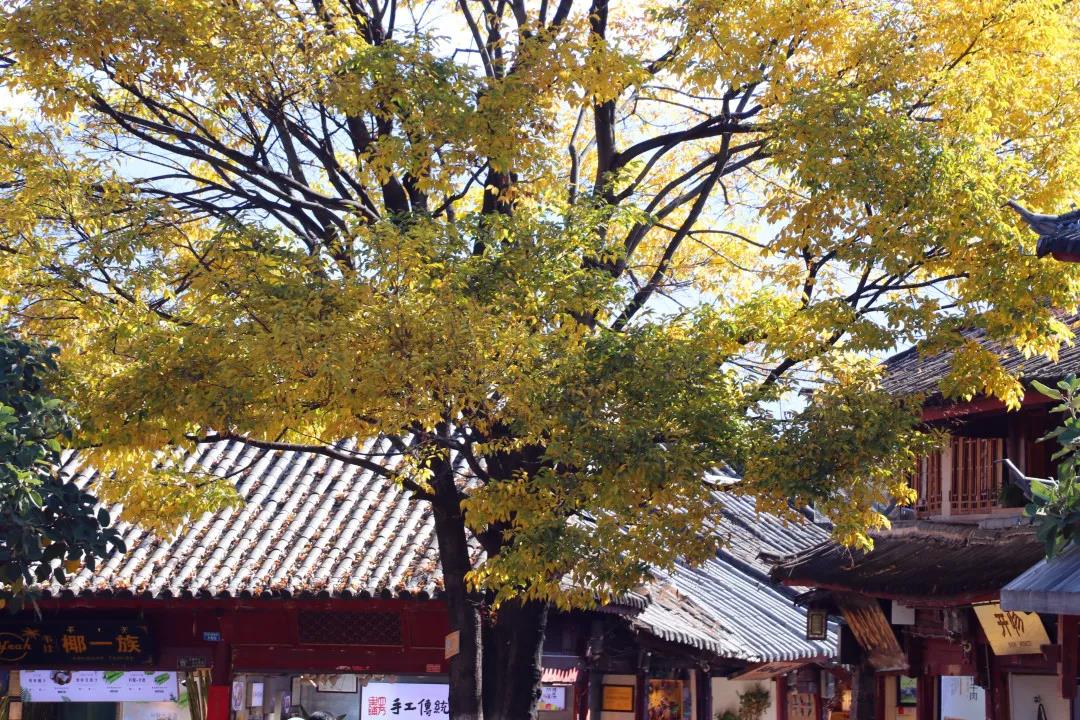 這名字乍一聽,很多人想到的都是唱《平凡之路》《那些花兒》的樸樹,實際上樸樹確確實實是一種樹。這個時節,麗江古城里的樸樹也已換上“小黃裙”,到了最佳觀賞期。