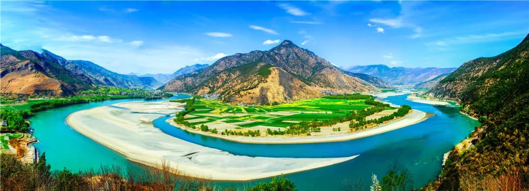 “金沙玉龍——谷中金沙,云上玉龍”,在金沙江畔,有一個集山水田園風光和納西村落為一體的景區(qū)——三谷水。