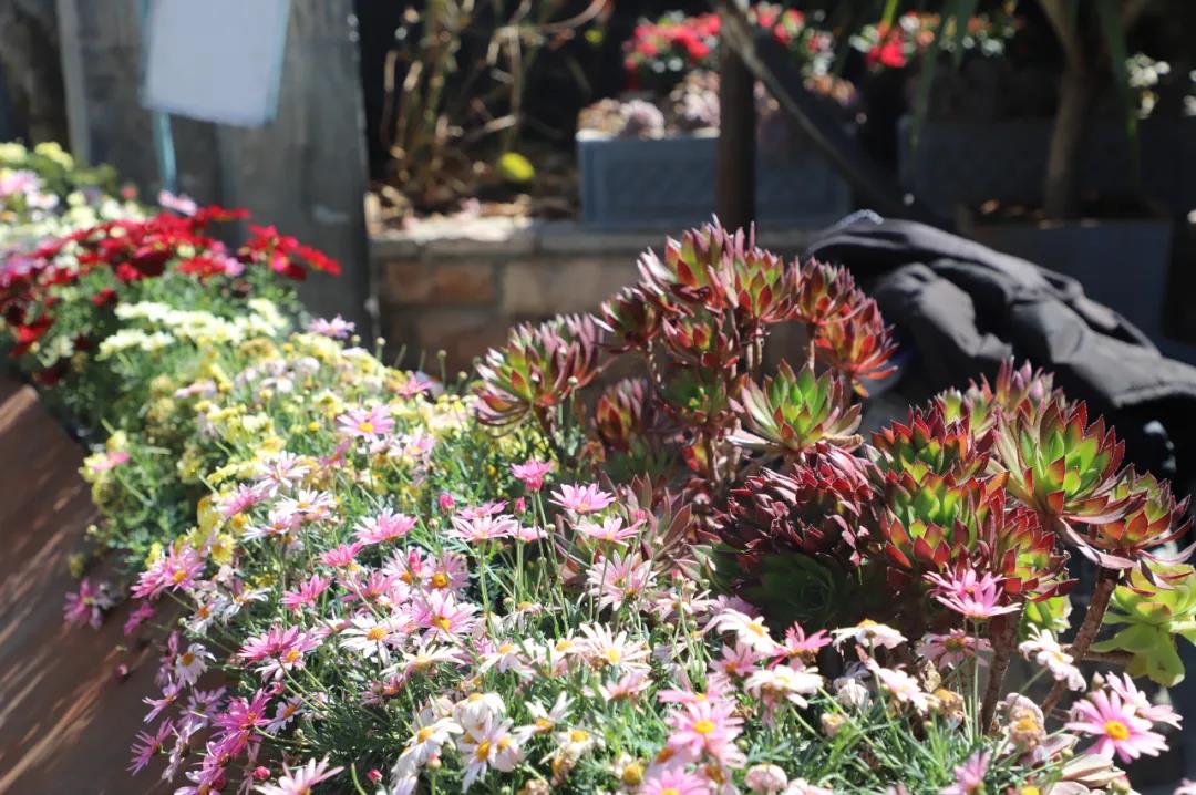 說到麗江的花,古城自然是少不了的。無論什么季節(jié),只要你來,那你一定會(huì)與古城的鮮花撞個(gè)滿懷。古城的花開在石板路的兩側(cè),紫的、粉的、黃的......應(yīng)有盡有,漫步在石板路上,仿佛一伸腳,就踏進(jìn)了整個(gè)春天。