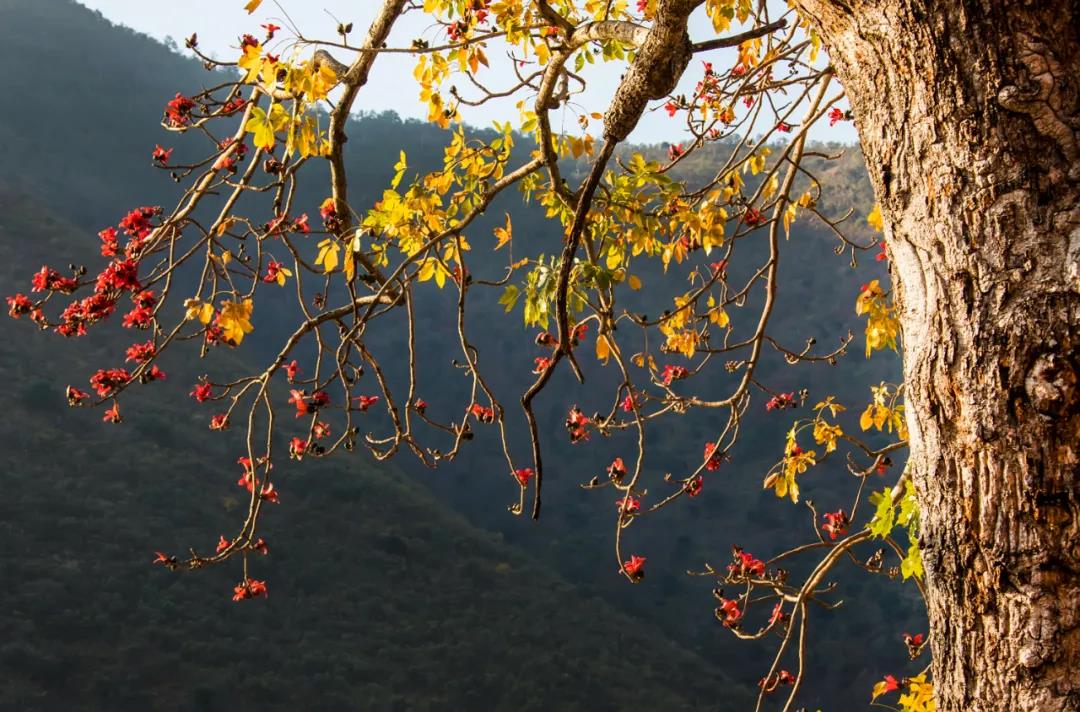 其實,除了華坪,在永勝也有不少木棉樹。譬如三川、片角等地,都能見到木棉的身影。在河谷中蜿蜒的道路上,在古老的村落邊,這火紅的樹,一棵便能撐起那一片的春色。