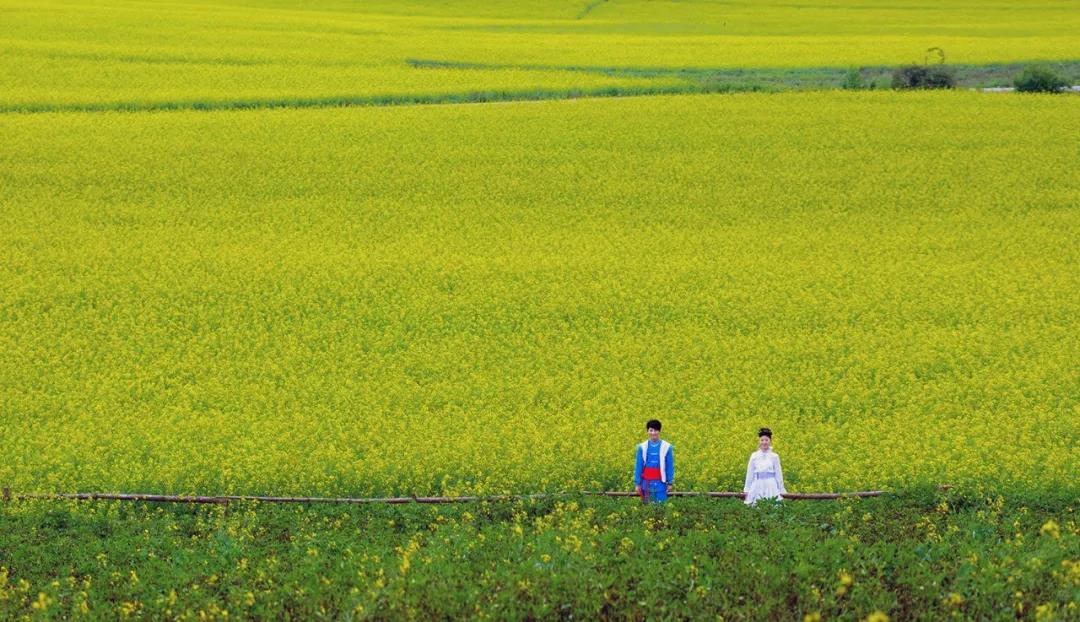 那一片片黃,淹沒了田野,淹沒了山岡,把小村莊包裹成了一道秀麗的風景。沿著盛開油菜花的小路徑漫步,陽光下閃著金光的油菜花,散發著淡淡沁人心脾的花香。不錯,這就是春天的味道。